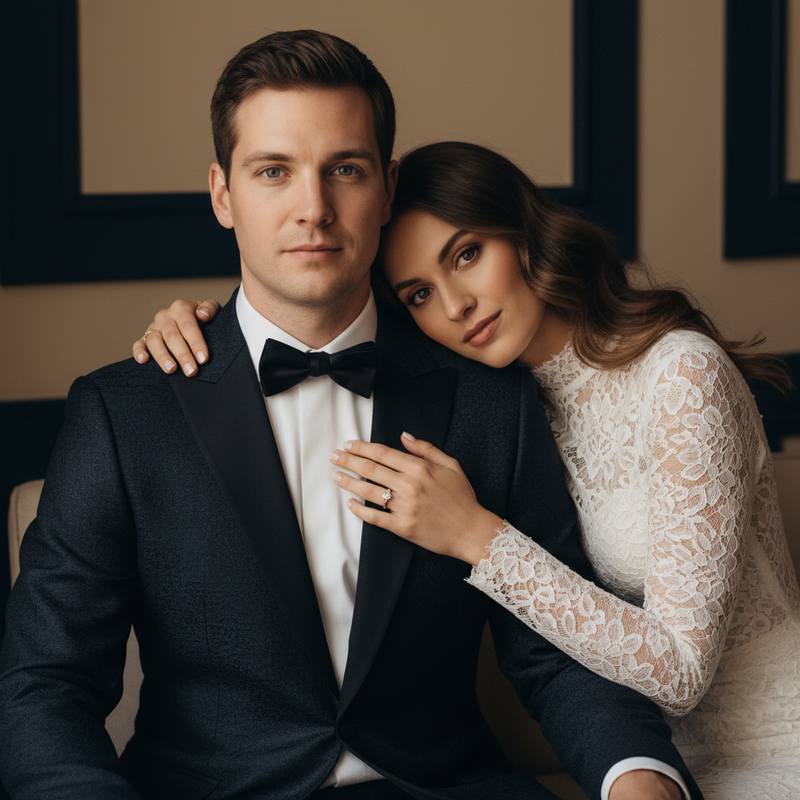 Yes, we offer a variety of portrait setups, including monochrome portraits on a classic white background. Additionally, we can adapt our studio to fit your venue’s existing setup, allowing us to create stunning portraits in specific locations that you have in mind. Whether it’s a black canvas or a beautifully designed space at your venue, we’re committed to capturing the perfect portraits that reflect your style and vision.
